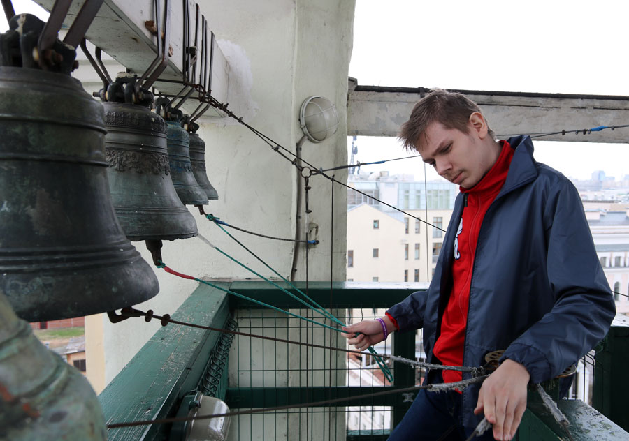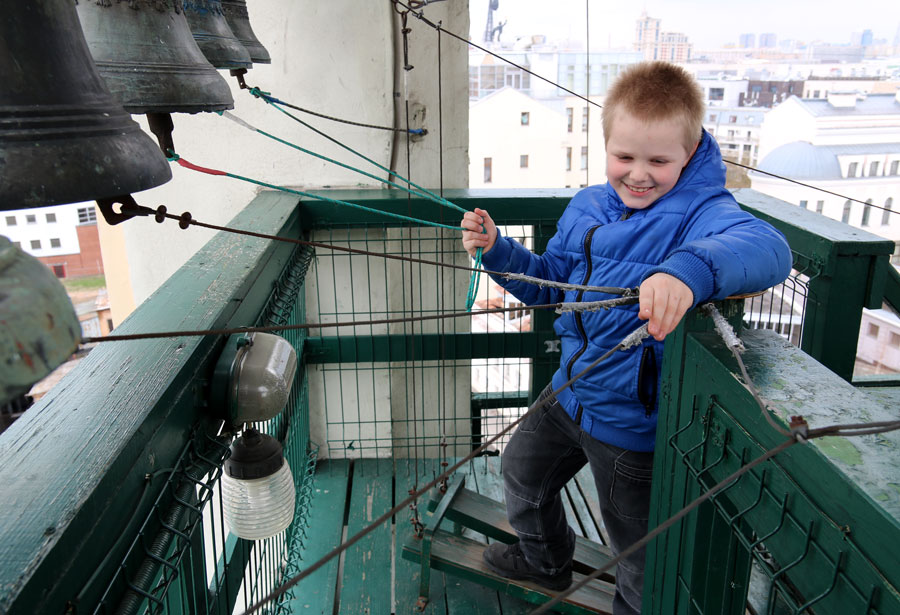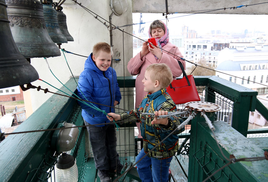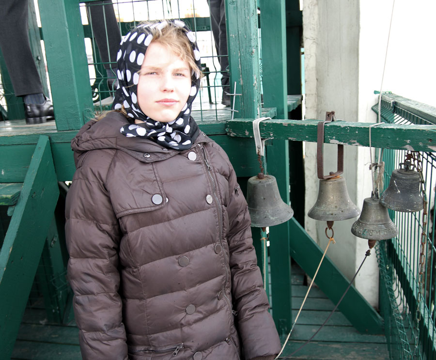 В этот раз ребята приехали в сам праздник Пасхи. Ответственный за сотрудничество с центром протоиерей Николай Скурат провел для детей краткую экскурсию по нашему храму. Затем они в сопровождении ответственной за деятельность воскресной школы Т. В. Качалы поднялись на колокольню и с удовольствием позвонили в колокола. Также ребята получили в подарок куличи.