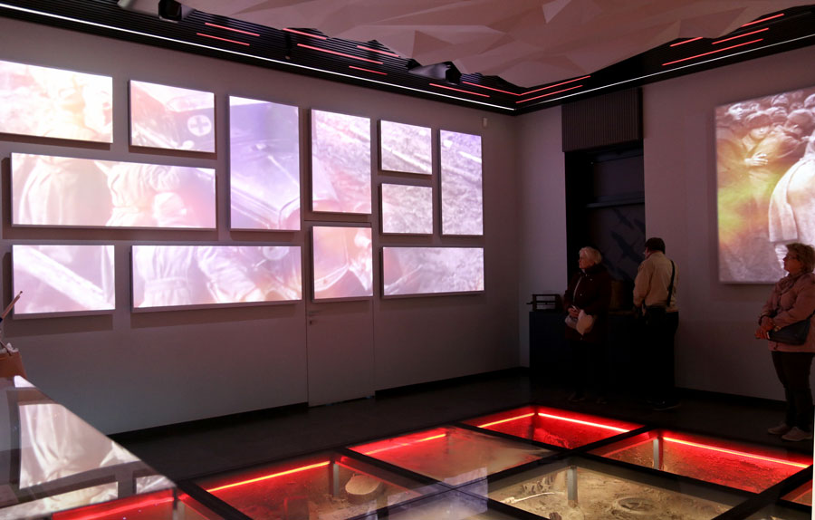 На территории мемориального комплекса работает музейно-выставочный павильон, где можно посмотреть архивные документы, фотографии и видеофрагменты. В зале прозрачный пол с артефактами военных действий.
