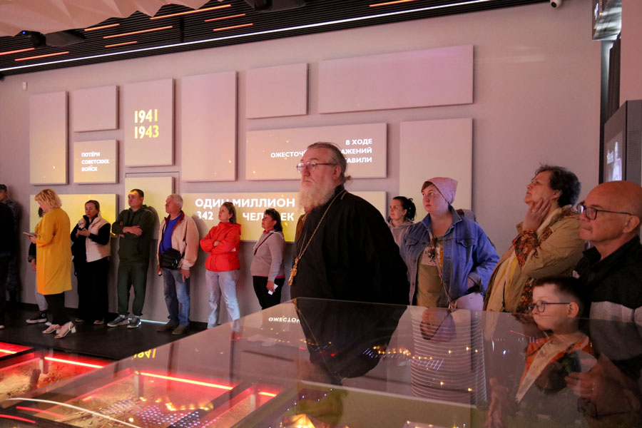 Паломники побывали на мемориальном кладбище, где покоится более 14 тысяч солдат, осмотрели кладбищенскую часовню в честь святого благоверного князя Александра Невского, посетили музей Центра патриотического воспитания, в котором представлены экспонаты, найденные при раскопках: личные вещи солдат, предметы быта, уцелевшие части техники. Интереснейшие экскурсии по экспозиции Центра проводят поисковики-энтузиасты.