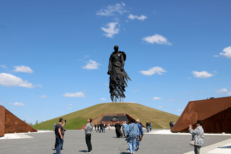 Величественный памятник, посвященный героям Ржевской битвы, создан по проекту скульптора Андрея Коробцова и архитектора Константина Фомина. 25-метровая фигура солдата возвышается над коридором стальных плит, на которых увековечены имена павших воинов.