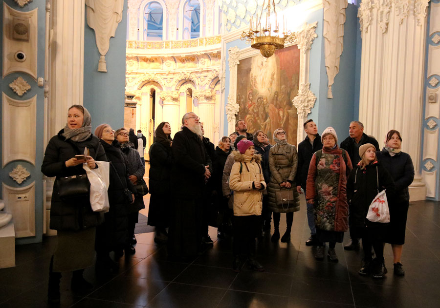 Наши паломники побывали в отреставрированном соборе Воскресения Христова, поклонились Гробу Господню в Кувуклии, приложились к камню Повития (Миропомазания), к привезенному по заказу Патриарха Никона из Палестины кипарисовому Кресту в меру Креста Господня, к мощам святой мученицы Татианы и другим святыням. Учащиеся воскресной школы совместно с преподавателями церковного пения спели в соборе стихиры Пасхи и другие известные песнопения. Паломники осмотрели все приделы основного наземного и подземного ярусов собора, благодаря полученным в Воскресной школе знаниям прочитали «каменный путеводитель», побывали в Темнице Господней, а также попили воды из кладезя «Живоносный источник» в пещере Обретения Животворящего Креста Господня. Учащиеся воскресной школы обошли вокруг монастыря и частично — по стене обители, осмотрели ее стены и башни, Силоамский источник, поток Кедрон, Богоявленский скит Патриарха Никона, реку Иордан-Истру и богоявленскую купель на ней.