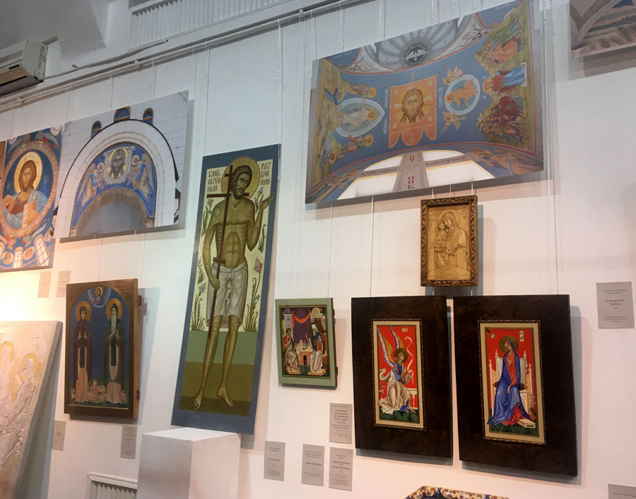 На фестивале представлены работы более 200 участников — иконы, росписи, мозаика, витражи, скульптура, керамика, фотографии храмовых интерьеров.