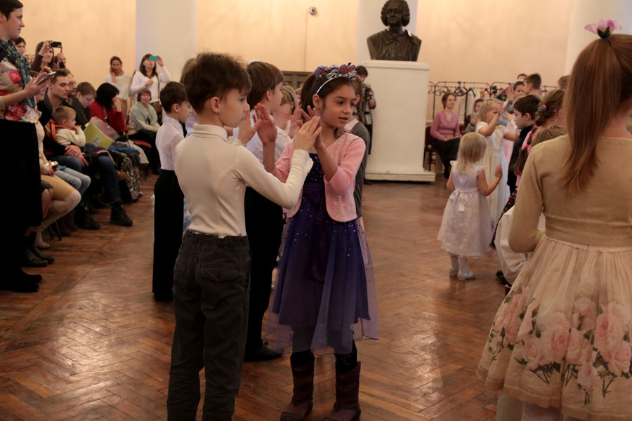 Несколько раз в течение праздника зрительный зал превращался в бальный. Под руководством опытных хореографов дети разучили несложные танцевальные движения — получился настоящий красивый танец.