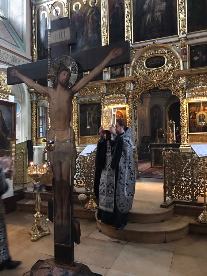 В конце богослужения, под трогательные, но вселяющие надежду слова стихиры «Поклоняемся Страстем Твоим, Христе… Покажи нам и славное Твое Воскресение», верующие с благоговением совершили поклонение Распятию Господню.
