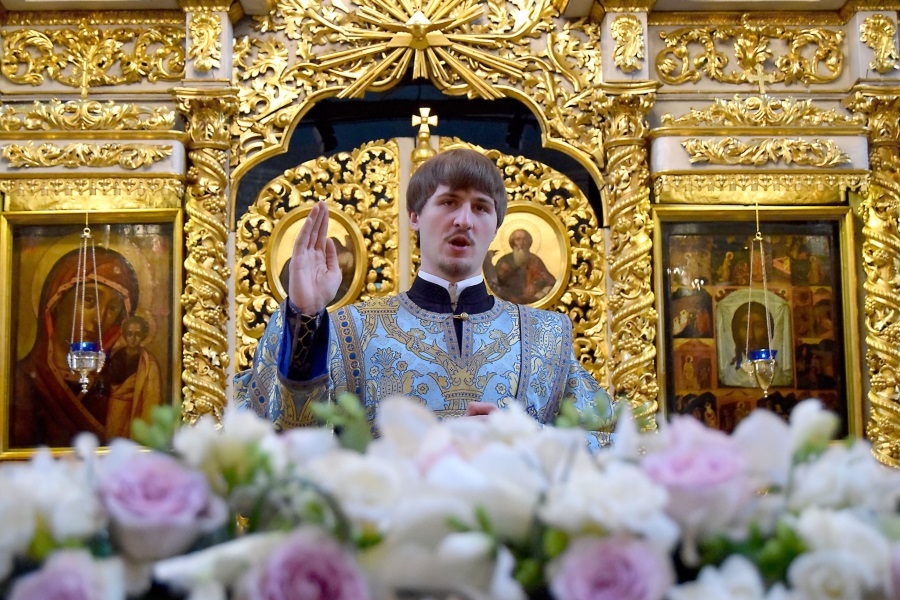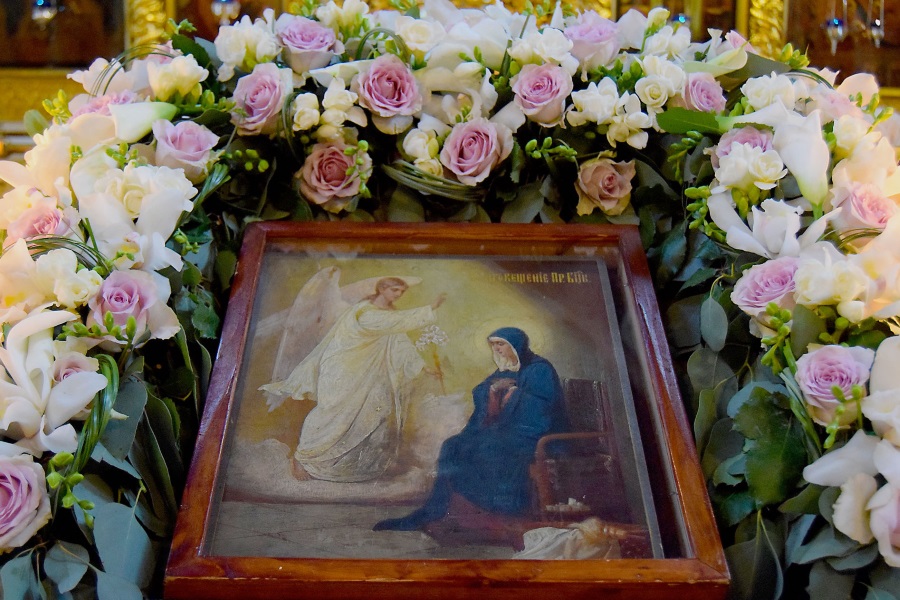 В этом году Благовещение Пресвятой Богородицы совпало с последним днем Четыредесятницы, предварив Лазареву субботу и Вербное воскресенье. Праздничные песнопения, посвященные Царице Небесной, сочетаясь с великопостными текстами, создавали непередаваемую торжественно-умилительную молитвенную атмосферу.