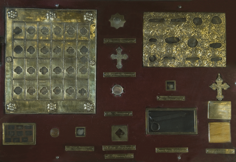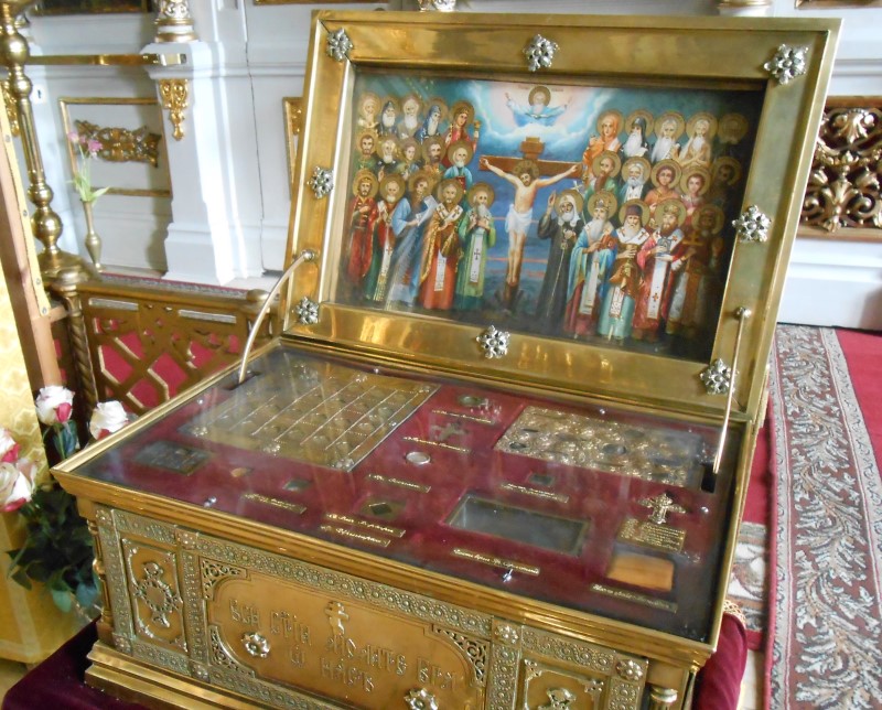 В нашем храме, в левом мощевике у главного алтаря, хранится частица мощей этого святого.