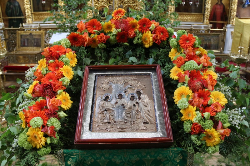 Накануне праздника, в субботу вечером, было совершено торжественное всенощное бдение, к началу которого храм усилиями его работников преобразился, облачившись в традиционное для Троицы зеленое убранство. Возглавил богослужение настоятель храма протоиерей Максим Шевцов. Свежесть и аромат березовых ветвей, цветов и травы, покрывшей старинные плиты храмового пола, напомнили о явлении Троицы праотцу Аврааму у дуба Мамврийского, о Сионской горнице, украшенной в честь иудейской Пятидесятницы зеленью, и о таинственном обновлении душ благодатью Святого Духа.