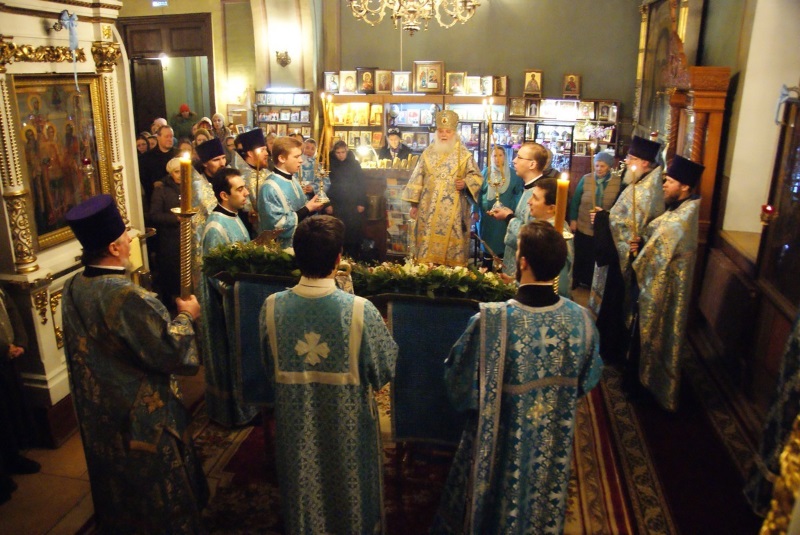 Всенощное бдение, совершенное в понедельник вечером, стало радостным продолжением празднования Сретения Господня. Торжественные и умилительные песнопения вновь прославляли Спасителя, Его Пречистую Матерь и угодников Божиих, бывших участниками отмечавшегося Евангельского события. Собравшиеся почтить память святых Симеона и Анны наши прихожане и паломники почувствовали особую атмосферу богослужения — по-домашнему теплую и по-архиерейски благодатную.