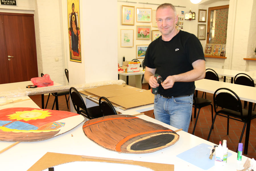 Подставки под декорации и их крепления изготавливают учащийся взрослой воскресной школы А. Г. Синельщиков и родители детей.